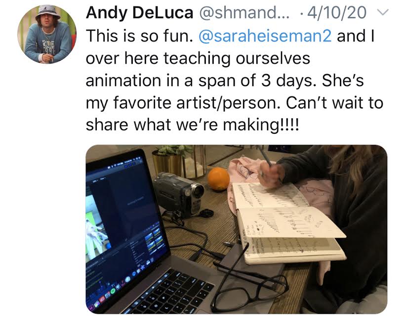 The first sneak peak was given by the guys’ creative art director, Andy Deluca (who also designed their album artwork for CALM) Below is the tweet Andy posted with girlfriend Sarah Eiseman who is practicing drawing various flowers that would eventually be seen in the Wildflower video. Both Deluca and Eiseman created the lyric video for the single as well. Fans were ecstatic to see that on the screen beside her, was lead singer Luke Hemmings and his dog Petunia in front of a green screen. The Wildflower music video was back on the table! Andy has always been good with leaving fun little bread crumbs for fans. Thanks Andy!